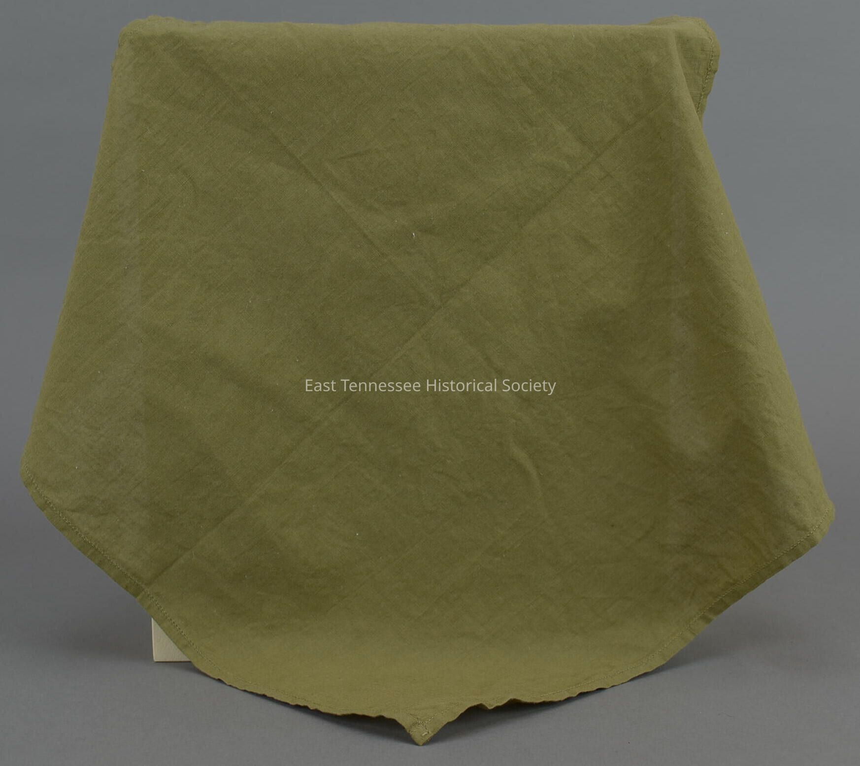 Military-issue handkerchief of Robert Mallory LaForge, olive-green cotton, manufacturer unknown, 16" square, World War II/1941-1945.Made/Created