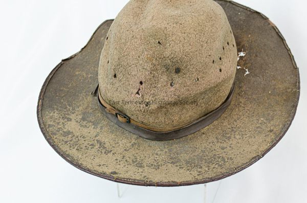 Union Army hat; Civil War; brown felt, leather sweat band; unlined; leather trim on brim edge and around crown. John Watkins collection.Dimensions