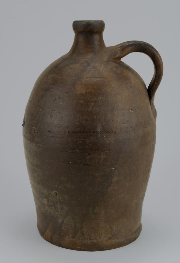 Made at Samuel Smith Pottery by Swiss potter Samuel L. Smith Jr. [1800, Switzerland-1873, Blackjack, Texas, m. 1823 to Onie/Oney Carnes/Karnes(1823, Knoxville-1873, Blackjack, Texas)], who immigrated to Knoxville in 1819, earliest documented potter in Knoxville, listed in 1820 Manufacturers Census), left Anderson County for Texas in 1849 and settled in Smith County, naming their town Knoxville.Collection