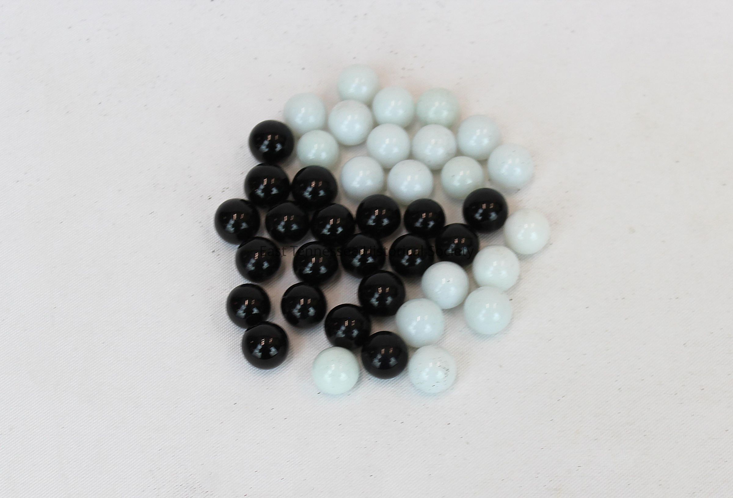 .1-20) 20 black marbles, glass, manufacturer and date unknown/early 20th century.