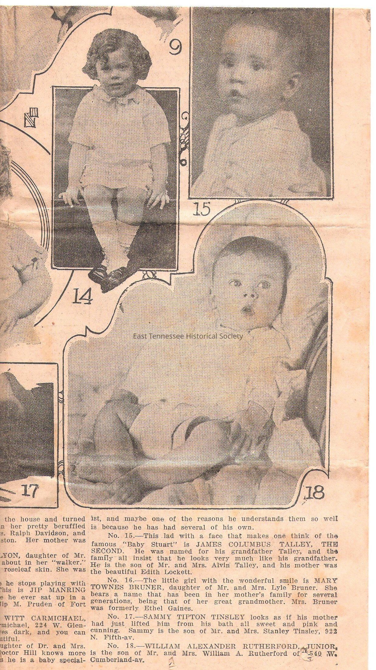Newspaper page from "The Knoxville News Sentinnel" society page with James Columbus Talley II, March 6 1927.