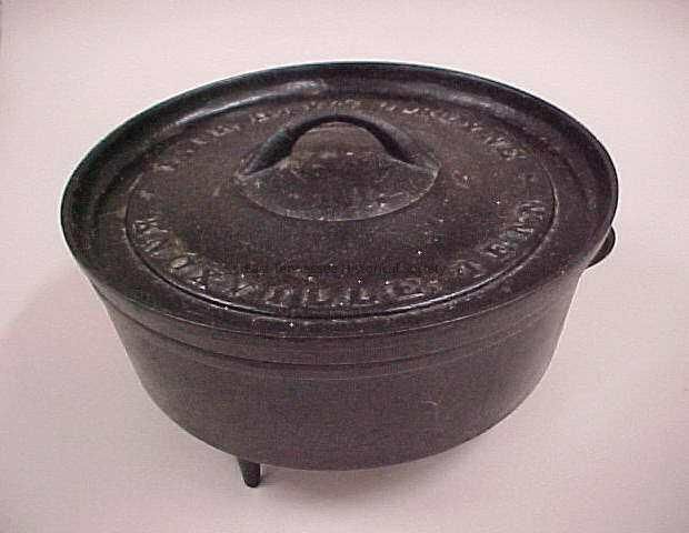 Dutch oven, cast iron with black exterior coating, manufactured by Fair, Day and DeKlyne, 7 1/2"h x 13 1/2"w x 12 3/4"d, 1891-1894(later?).