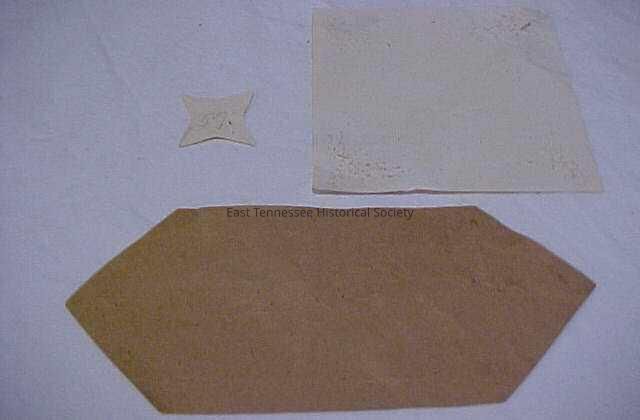 a) Star (1.75in x 1.75in). Four pointed star. Shape marked "57". Cut from ecru paper.