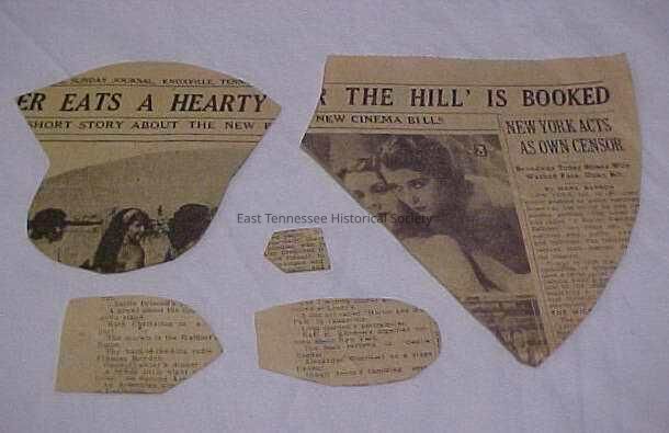 e) Shield shape. (5.75in x 6.0in) cut from newspaper after January 23 (?).