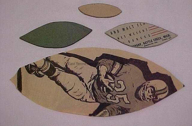 Collection of quilting templates. Include: four lemon shapes, four triangles, eight diamonds, two rectangles, two trapezoids, one circle, two hexagons, eight squares, eight miscellaneous pieces, 38 quilting stencils. Cut from different types of paper including: newspaper, cardboard, calender pages, cereal boxes, brown paper, colored paper, magazine pages, post cards, church bulletins. Also included two pre-cut pieces of fabric. One piece of fabric is pink with purple, red, gree, and white flowers. The other fabric is white with yellow and green pineapple, and blue water. Some paper items have notes written on them include pattern titles or cutting directions.