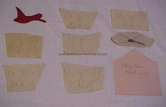 e) Butterfly (4.625in x 3.25in) penciled on ecru paper. Not precisely cut out.
