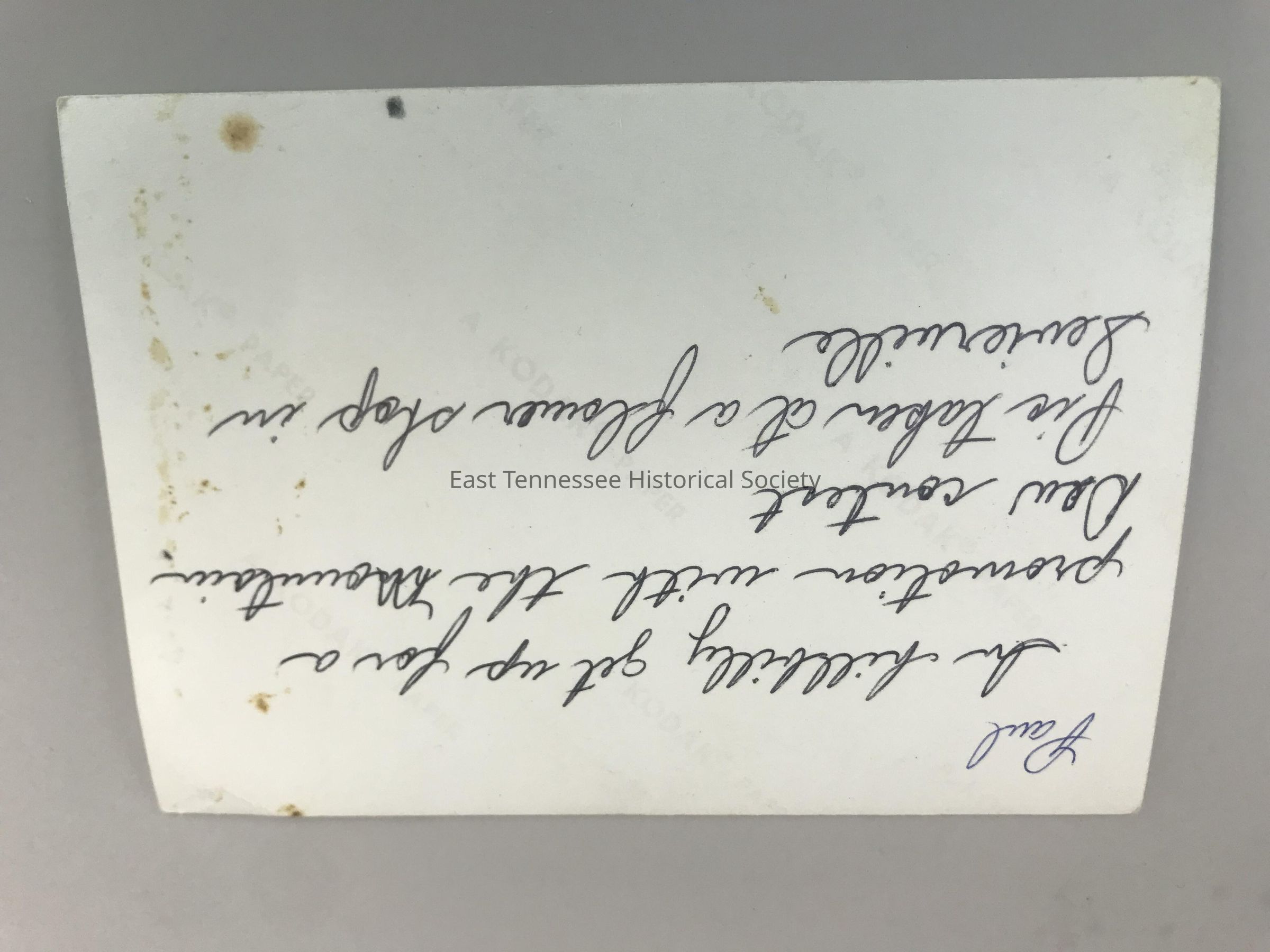Photograph of Paul Chadwell dressed in hillbilly attire on his delivery route in Sevier County. need to scan