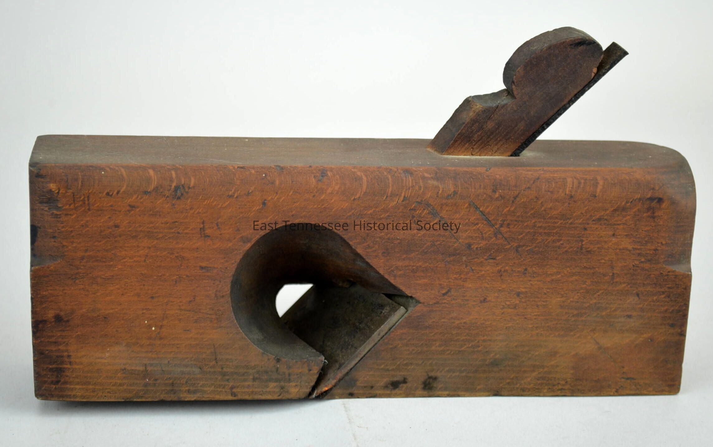 a) Block wood moulding plane, maple, skew rabbet, front end marked "Sandusky Tool Co. / Ohio" perpendicular to blade and "146" upside down and perpendicular to blade, back end stamped "J.D.A." perpendicular to blade and "2" parallel to blade, 5"h x 9 3/8"w x 1 7/8"d, probably 1880s to 1910s.