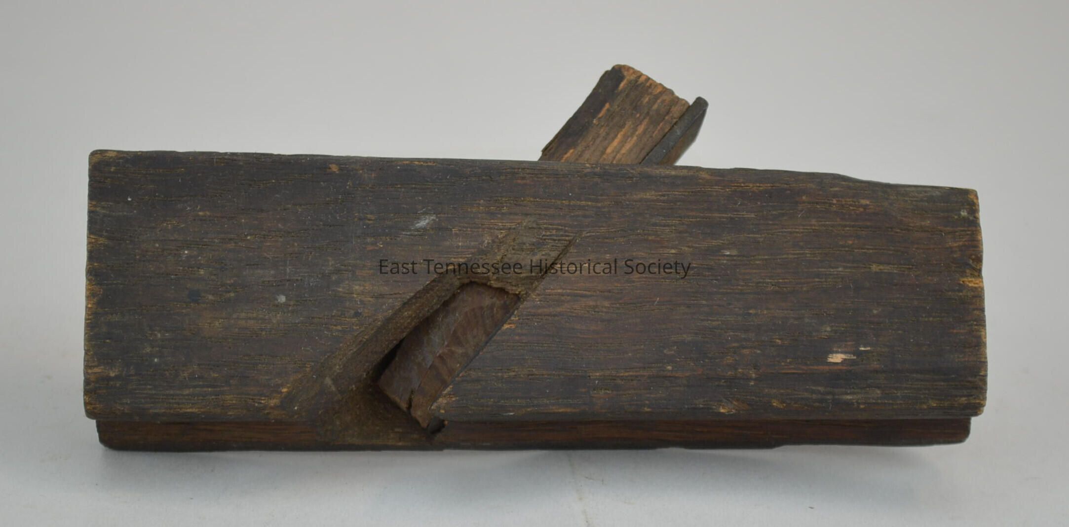 a) Chamfer(?) plane, wood (oak), simple form, unmarked/unknown whether homemade or factory made*, 3"h x 6 7/8"w x 1 1/4"d, 1880-1920.