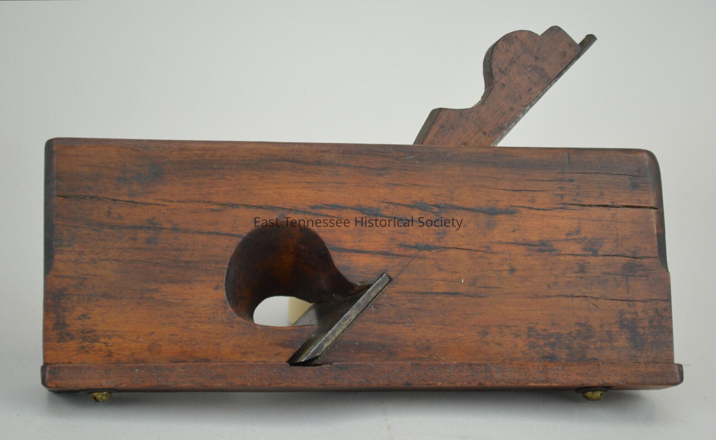 a) Dado [rabbet] plane, wood (may be apple), separate wood piece held to base with two flathead screws (indicating it can be adjusted)/"fence" (beech) which wasn't usually on this kind, all craftsman made/not factory, 5 3/4"h x 9 1/2"w x 1 1/2"d, DATE.