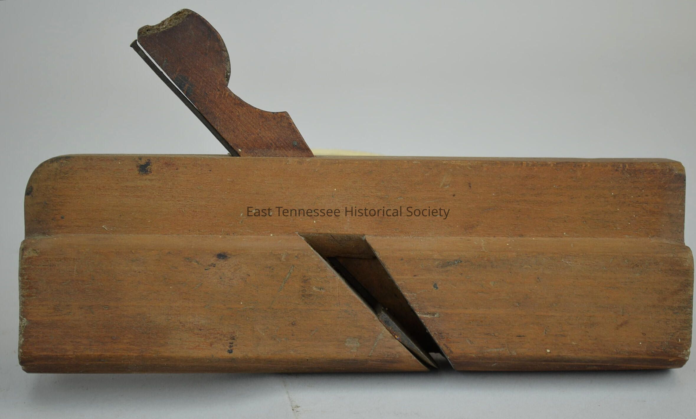 a) Molding plane, "Auburn Tool Co / Auburn, N.Y."stamped on heel perpendicular to blade, back end stamped "16" parallel to blade, "E. MILLER [with ER in half-size letters] picked out with nail on left side, manufactured by Auburn Tool Co., 5 1/4"h x 9 1/2"w x 1 5/8"d, 1864-1893.