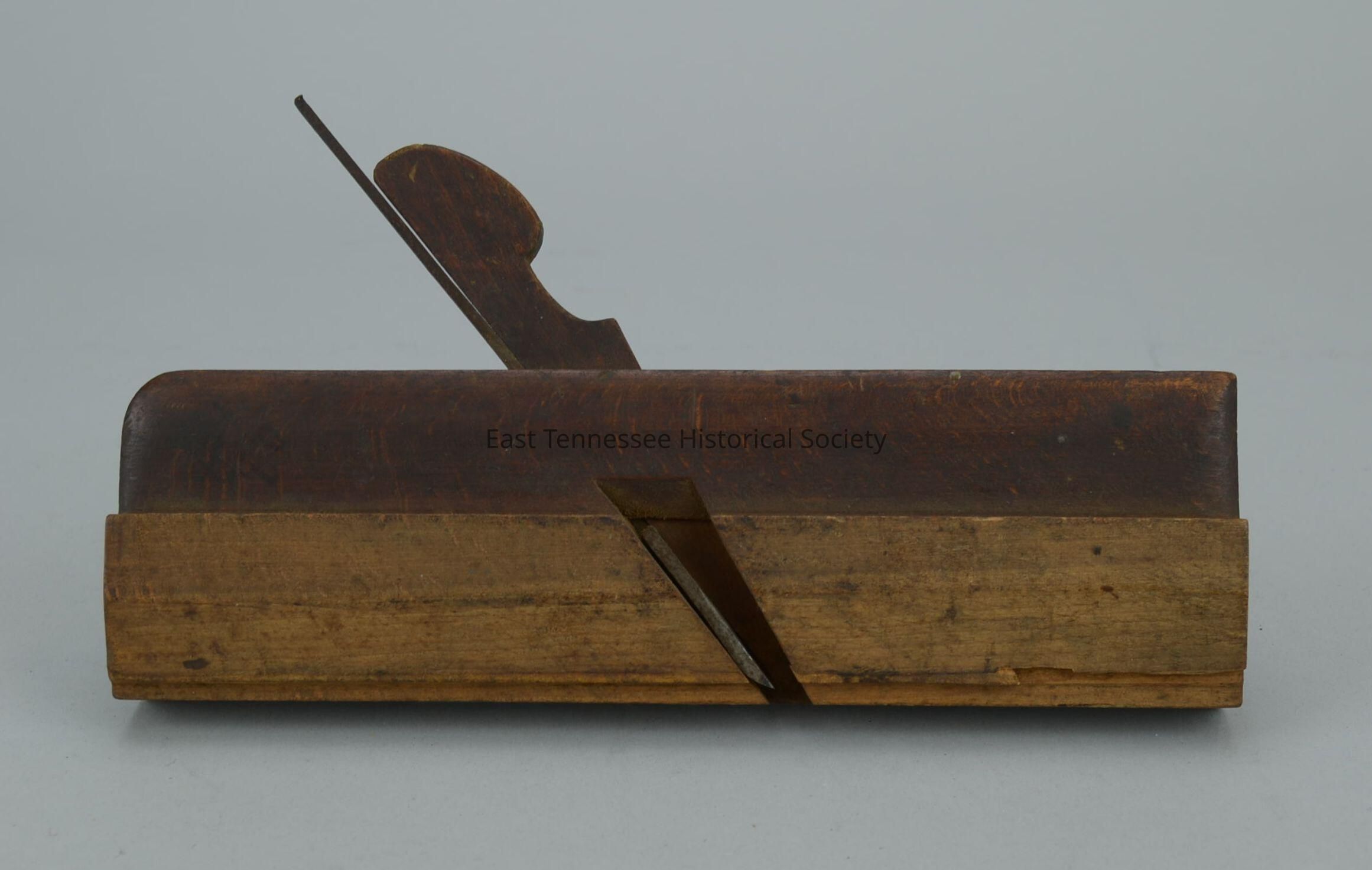 Modified plane (makes groove, such as around chest of drawers, 1/2", instead of attaching one); owner modified), H. CHAPIN, wood rectangle, diagonal cut top to bottom for blade and blade holder, marked "H. Chapin" at front, "1/2" and "23" on back, manufactured at Pine Meadows near New Hartford, Conn., 1828-1897. Rare. Blade modified and cut to make raised bead.
