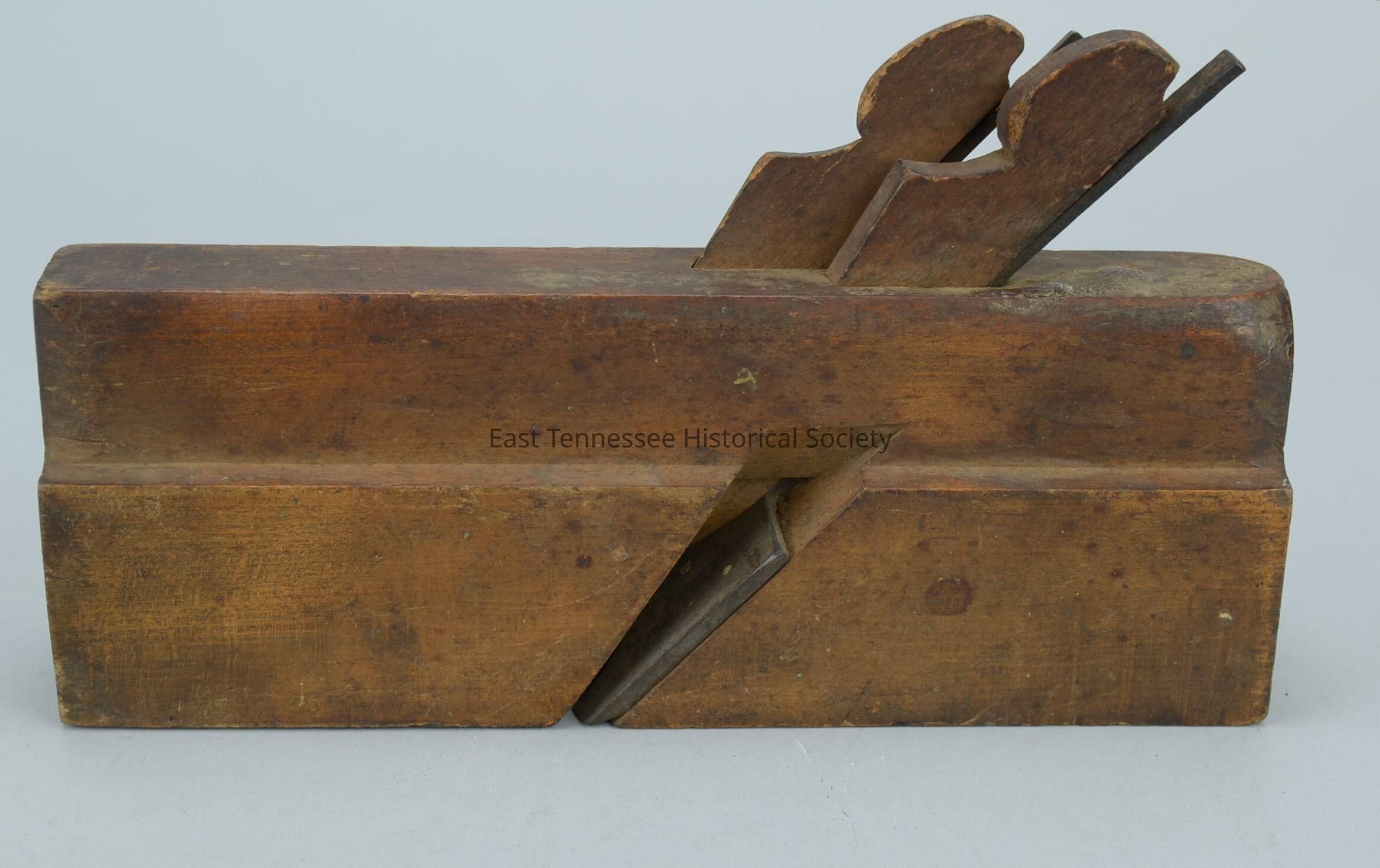 Fork staff plane No. 113, wood rectangle, marked "1 1/4" on one side double blade, SANDUSKY TOOL CO. / OHIO / SPECIAL with first and second rows outlined, manufactured by Sandusky Tool Co. (Sandusky, OH), 5 3/8"h x 9 3/8"w x 2", 1869-1925. Got used; blade got sharpened.