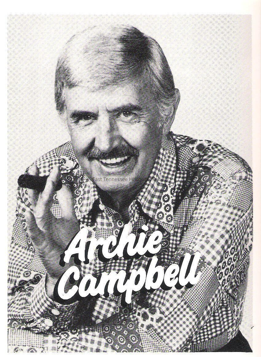 Publicity postcard for Archie Campbell, paper, black-and-white photograph of Archie Campbell on front with "Archie Campbell" in white lettering in lower half, address side marked "Arcam Enterprise, Inc. / Box 335 / Brentwood, TN 37027," 6"h x 4 1/2"w, date unknown/c. 1970s.Collection
