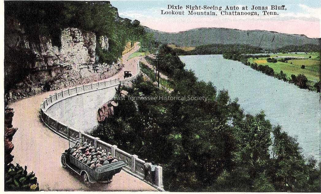 Postcard, tinted photo, "Dixie Sight - Seeing Auto at Jonas Bluff......," D.R. Weill Co., early 20th century.Made/Created