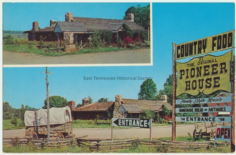 Postcard of the Pioneer House sign with inset of restaurant, published by Haynes Dristributing Co. (Roanoke, VA), unused.