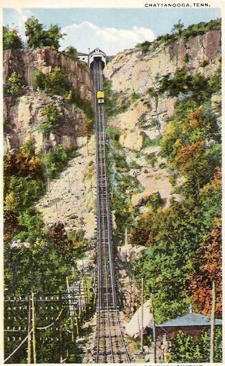 Postcard of an incline railroad, marked "CHATTANOOGA, TENN." and "THE STEEP GRADE, INCLINE RAILWAY UP LOOKOUT MOUNTAIN.," back caption reads "Battlefield Station on the right of the track. The cable incline is 4750 feet in length and as it approaches the top has a grade of 69 feet per 100. Altitude 1700 feet.," Lookout Series #42, correspondence, postmarked 1917, stamp has been removed.Made/Created