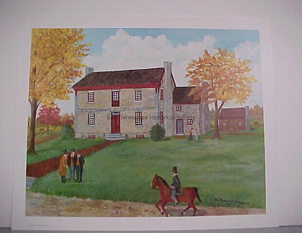 Print "Sunday Afternoon at Ramsey House" by Russell Briscoe, #304/1000, 18"h x 22"w, 1977. Depicts Ramsey House c. 1800.