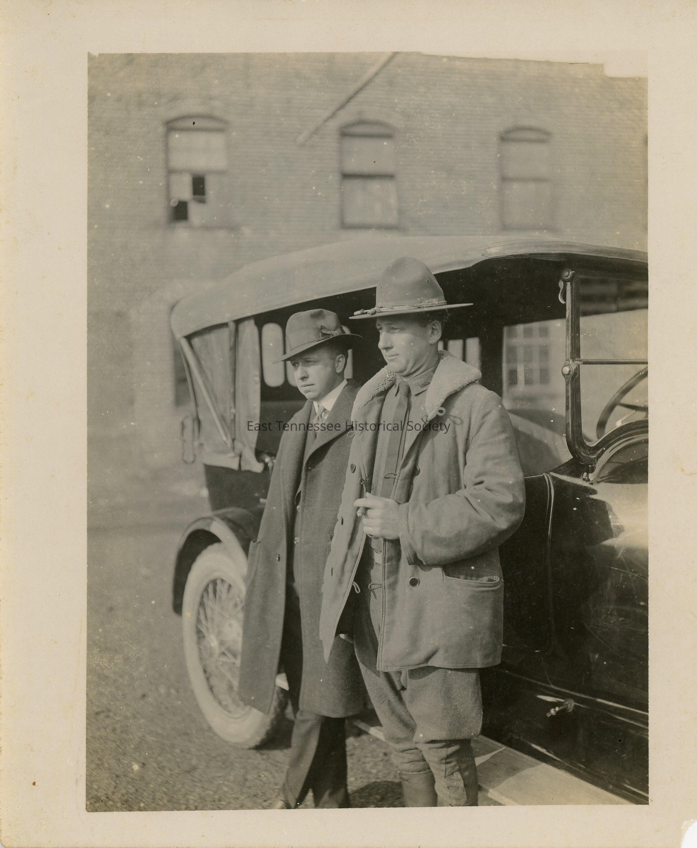 Black-and-white photograph of brothers James Ellis Talley and Alvin Morris Talley (right, in uniform), c. 1918.Collection