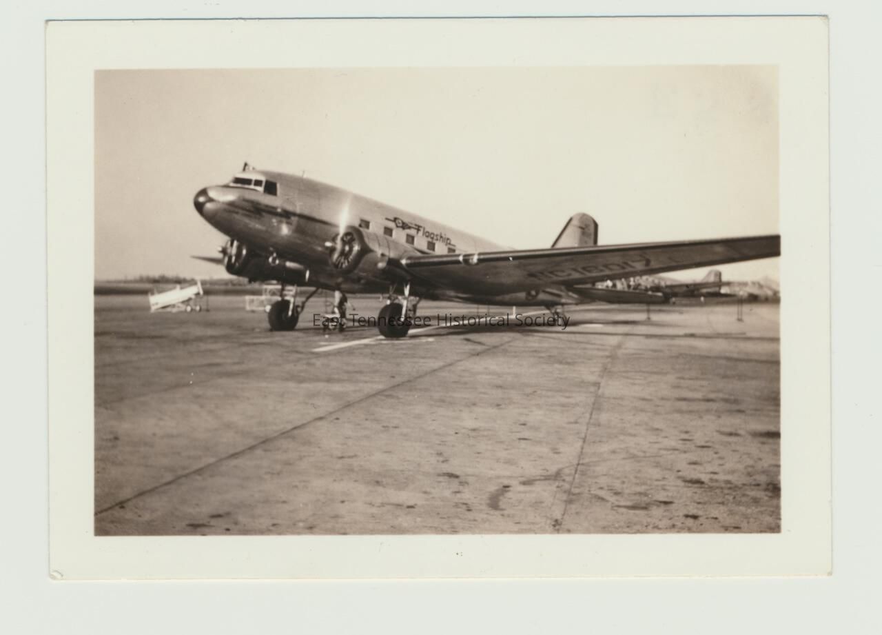 Digital photograph of DC-3 on tarmac (assumed to be plane on which Esther Carlson worked as stewardess), 1939-1940.