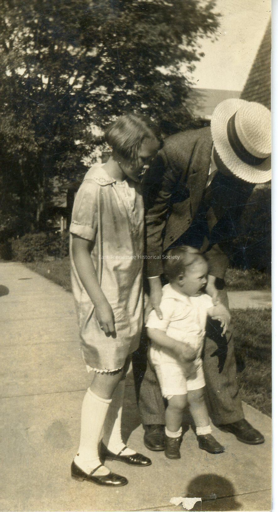 Black and white photograph cut in half of Alvin Morris Talley with stepdaughter Morgan Hazen [McCampbell and nephew James Talley II.