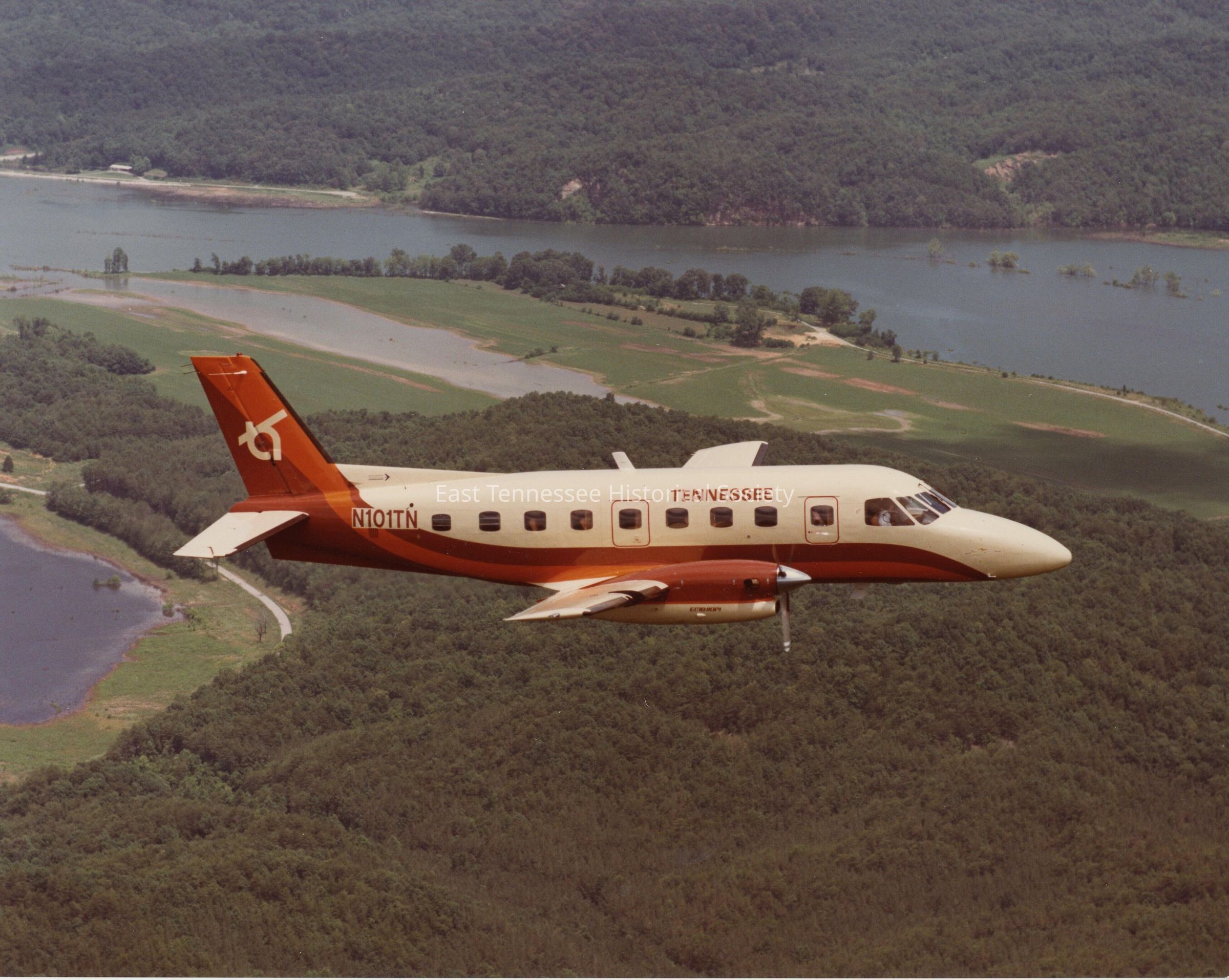 Photograph (color) of Tennessee Airways plane 3, 1970s-1980s.