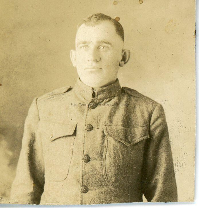Bust shot of Ray Edgar Underwood in uniform, 1 3/4" x 1 7/8", WWI era