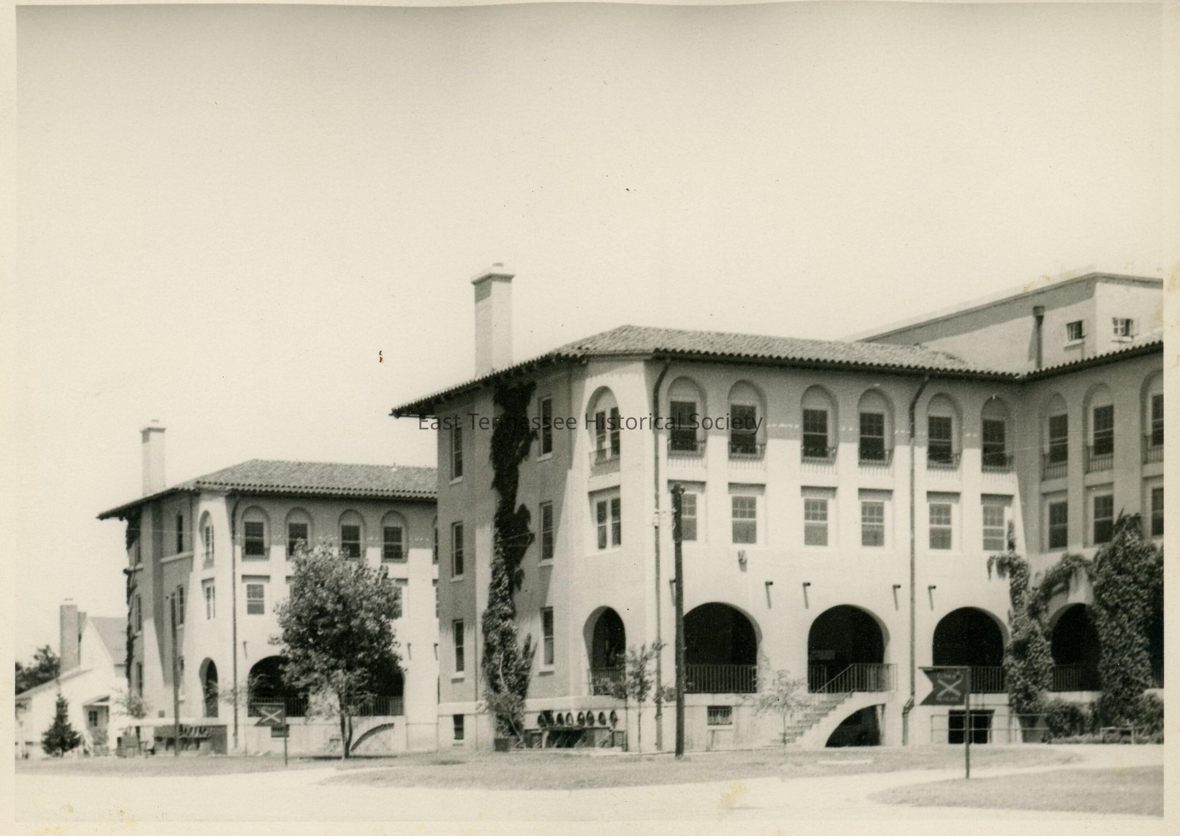 Black-and-white photograph, barrick's life at Fort Cronkite, Calif., marked on back "the Back of our Barracks." 4 1/2"w x 7"l, c.1942.Made/Created