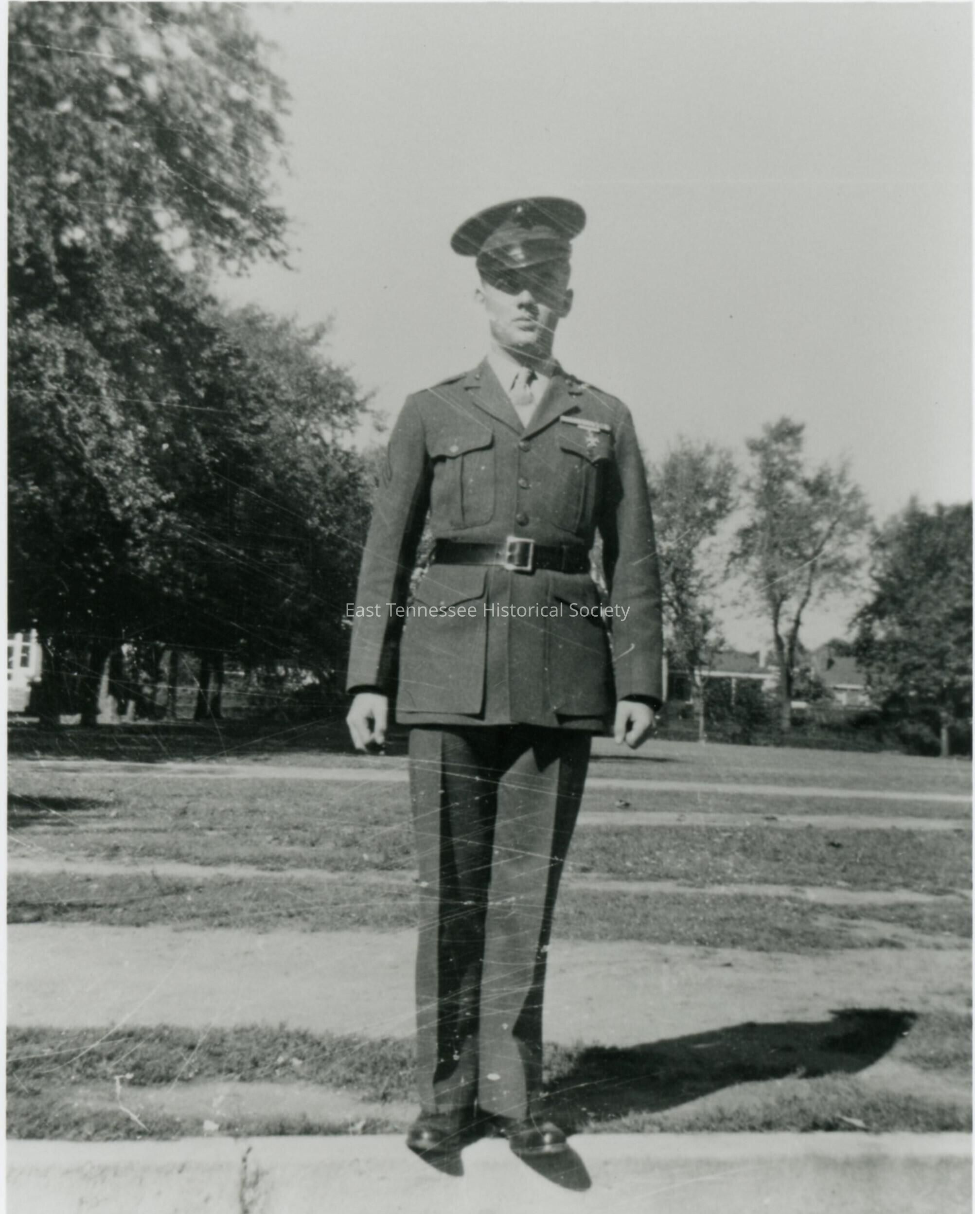 Copy print of R. B. Farmer in service uniform in outdoor setting, unknown date, 5" x 7".