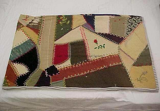 Crazy quilt, embroidered with "WRC" [William R. Couch] and "Jan. 1, 1900," wool with ticking back.