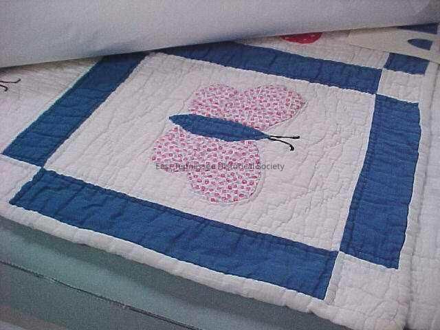 Child's quilt made by Nellie Jane Newman Thomas, butterfly design in each large square, handstitched, c. 1941.Collection