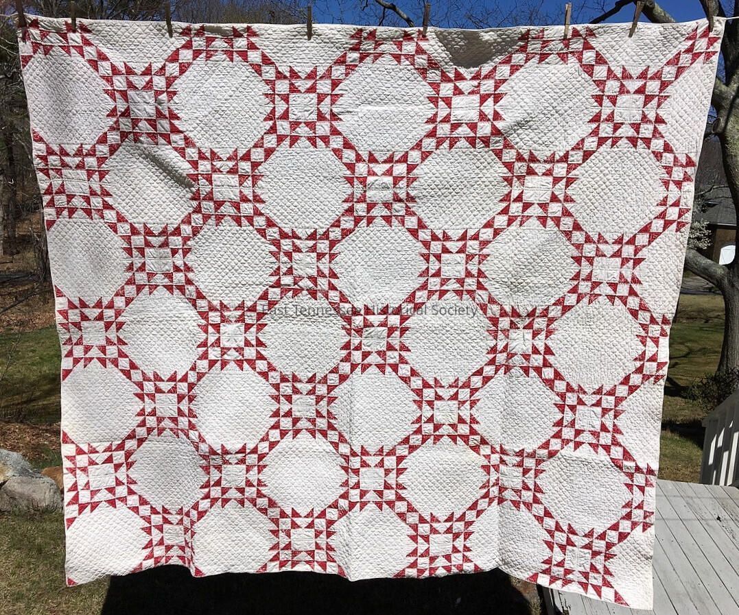 Note: In the final label copy for the ETHS feature exhibit "Stories in Stitches" (2017), quilt historian Merikay Waldvogel decided to call the pattern Taylor's Victory (rather than Taylor's Victory - Taylor's Defeat). She went through her notes of the quilt documentation days in the 1980s along with input from Candy St. Lawrence and Randi Nott. She didn't see anyone using the name Taylor's Defeat. She admits that we'll likely never know for sure how it got its name; one story is under Notes section.Collection