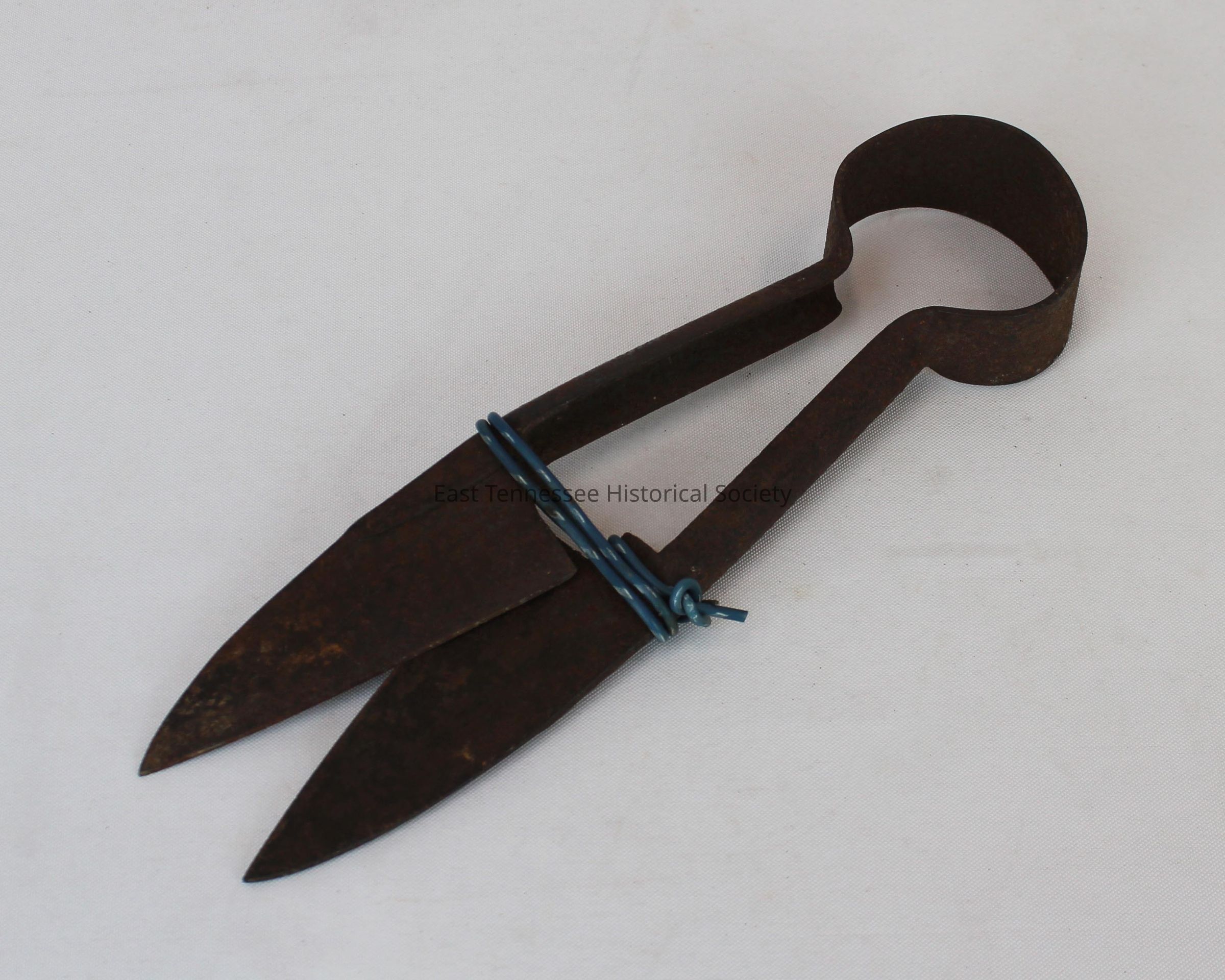 Sheep shears, metal, two scissor-like blades held in place by a rounded handle, "FULTON TOOL CO" marked on one blade, 10 5/8"h x 2 3/4"w x 1 1/2"d, c. 1930.Made/Created