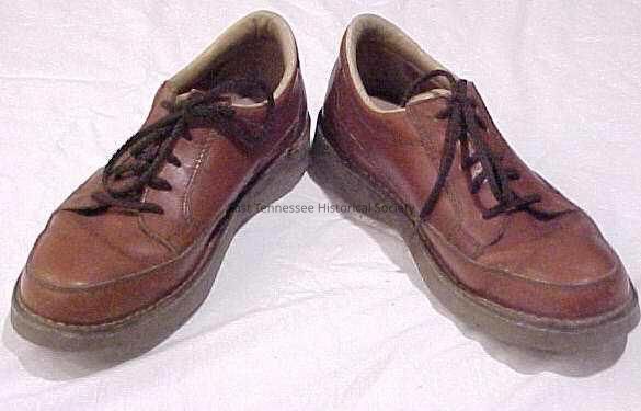 a-b) Pair of shoes, marked "Rockport," medium brown with tan trim, dark-brown laces, size?