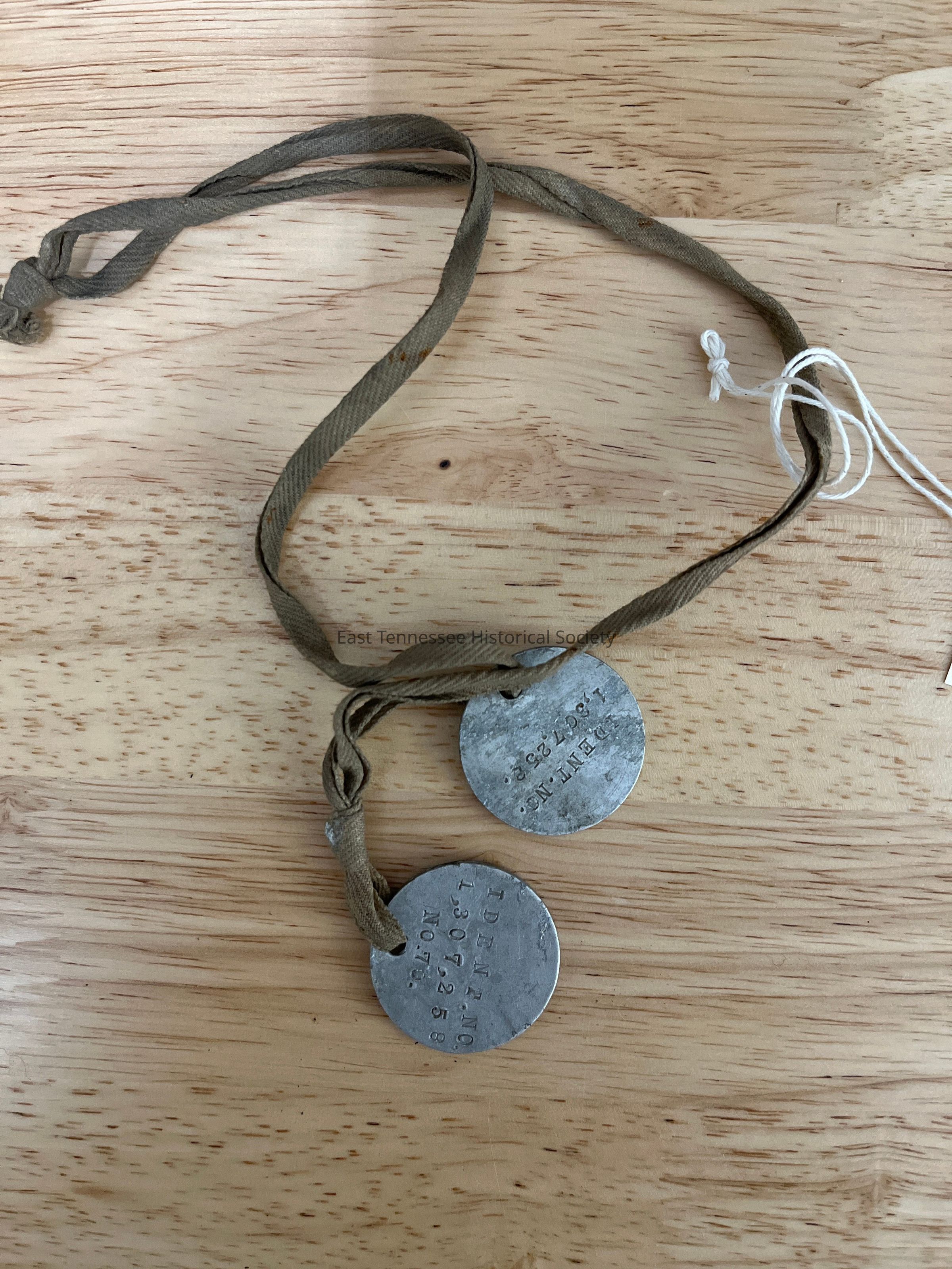 2 Elbert W. Berry Dog Tages. Stamped on it is "Elbert W. Berry", U.S.A, and "Ident. No. 1,307,258."