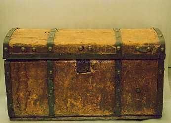Trunk used by William R. "Billy" Hutson, leather-covered wood, brass hound, paper lining, 1861-1865/Civil War era.Made/Created