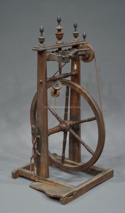 NOTE: spool removed from spinning wheel and stored before apparatus began display in "Made in Tennessee."