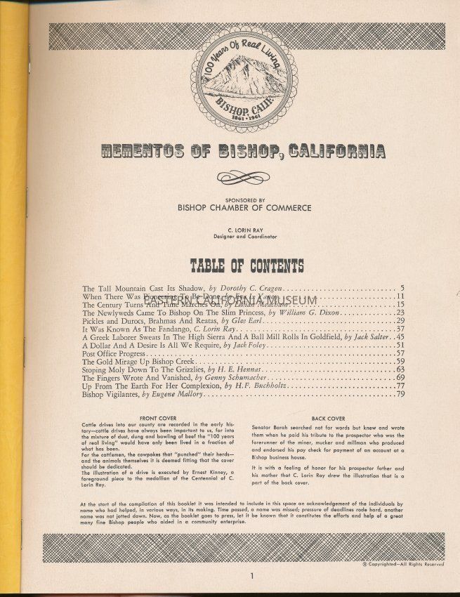 100 Years of Real Living, Bishop, Calif. 1861-1961