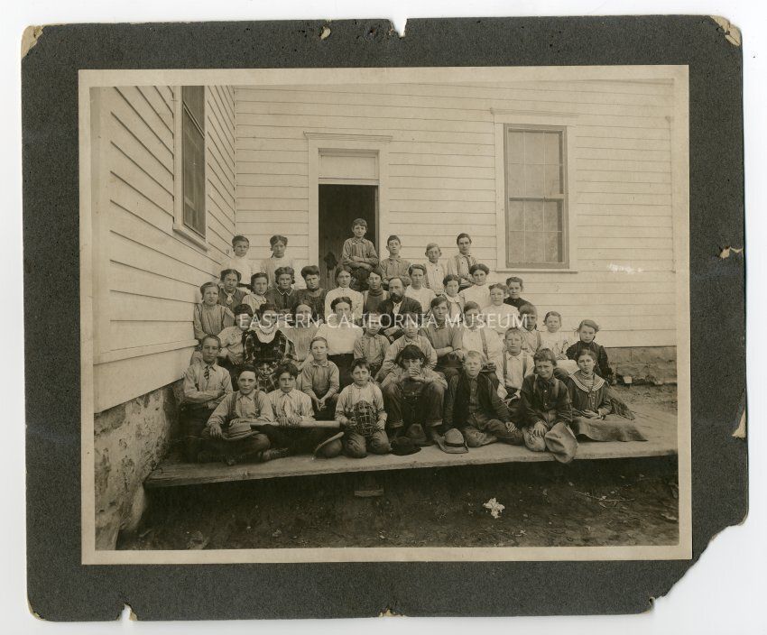 Spellings may be incorrect due to difficulties in reading the handwriting. 1907 Mr. Harlin in center of group. From right to left: Marie Pellisier, Elvira McMurry, Charley Meyers, Walter Jones, Charley Seglie, Howard Willson. Second row: Elsie Uhlmeyer, Bessa Robinson, Lois Hall, Florence Wright, Lila Sanders, Mable Seaton, Will Utter, Regina McMurry, Edith Smith, May Scoval, [illegible] Marlin, [missing] Harlin. Third row: Robert Smith, Mary Ford, Lena Meyers, Elva Late, Bert Harlin, Ira Uhlmeyer, Edgar Sanders, Harold Harlin, Frank Lacey, Earl Smith, Helen Cornell, Evelyn Wilson. Fourth row: Earl Branson, John Marlin, [illegible] Harlin, Robert Tracy, Frank Rossi, Warren [illegible], John Salque, Sophie [illegible].Collection