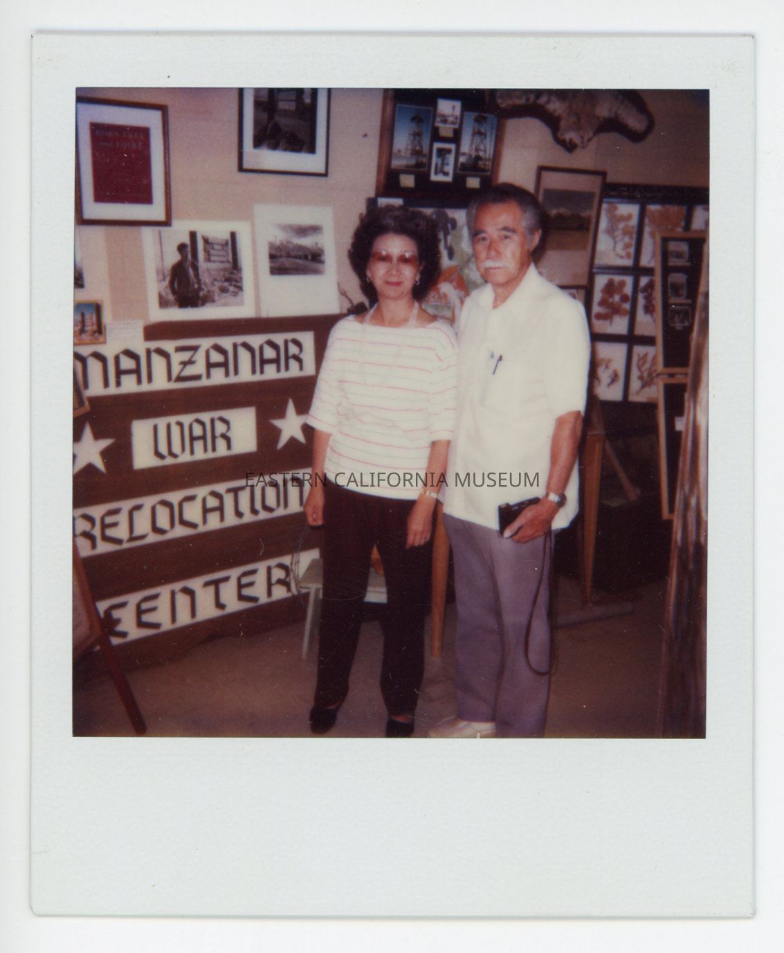 1994.80.195.1--Shiro and Mary Nomura in front of the Manzanar Exhibit.