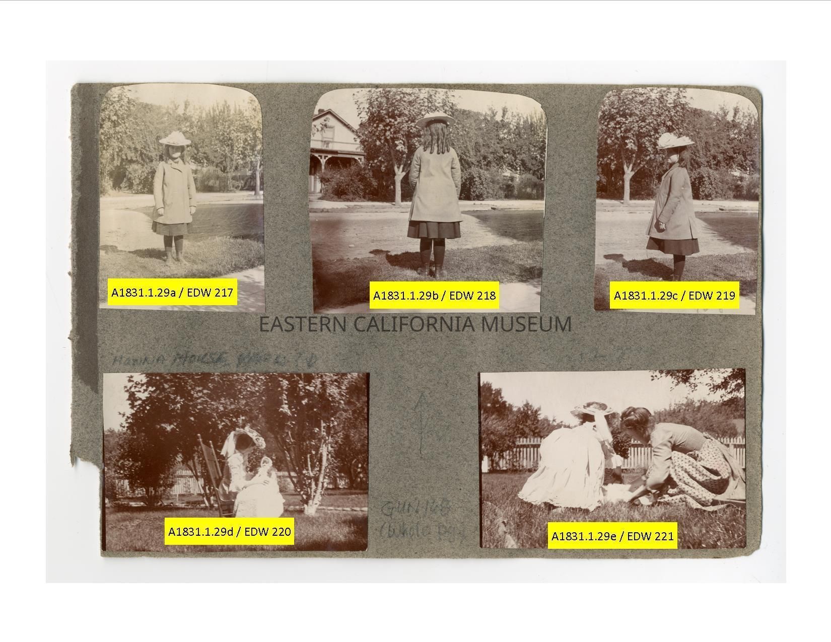 A1831.1.29b: Exterior photo of Helen Gunn, age 10, with her back to the camera, showing her ringlet hairstyle.