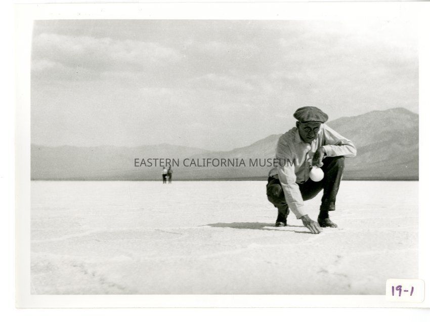 Label says: "Walter C. Fraser gathering samples of salt from Saline Valley salt deposits about 1925."