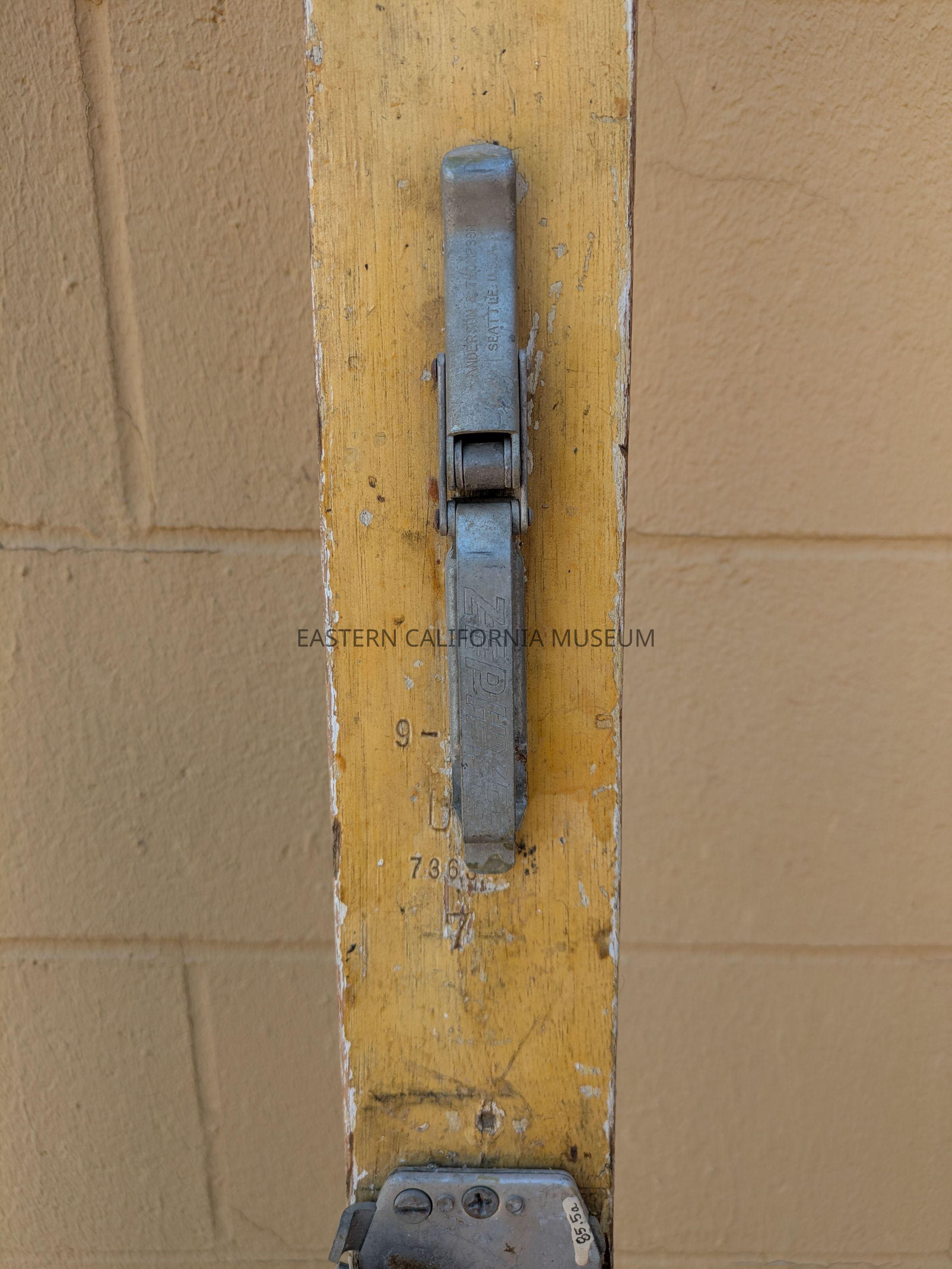 Pair of wood skis with metal edges. Bindings are "Zephyr" by Anderson & Thompson, Seattle, USA. Carved in the wood on each ski is, "I / 9-43 / US / 7-363 / 7." A visitor identified them as WWII military issue skis.