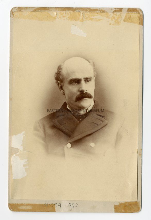 A scrap of paper with this photo says: "EMD information: Marie Victorine Meysan Holmes, who was married to Frank Fitzgerald, told me that Mrs. Sherman Stevens, Colonel Sherman Stevens' wife, was a Van Deventer (accent on the D). The son, Sherman Van Deventer was named for her. There was a Methodist Bishop or Minister who came to Inyo named Van Deventer and he was related to Colonel Stevens' wife."Collection