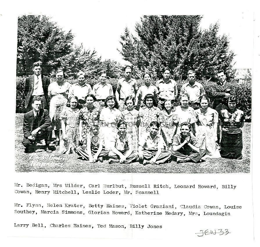 In this photo are: Mr. Bedigan, Mrs. Wilder, Carl Hurlbut, Russell Ritch, Leonard Howard, Billy Cowan, Henry Mitchell, Leslie Loder, Mr. Scannell, Mr. Flynn, Helen Krater, Betty Haines, Violet Graziani, Claudia Cowan, Louise Southey, Marcia Simmons, Glorian Howard, Katherine Medary, Mrs. Loundagin, Larry Bell, Charles Haines, Ted Mason, and Billy Jones.Photograph Details