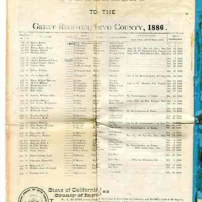 Copy of the Great Register of Inyo County, California, 1886Entry/Object ID