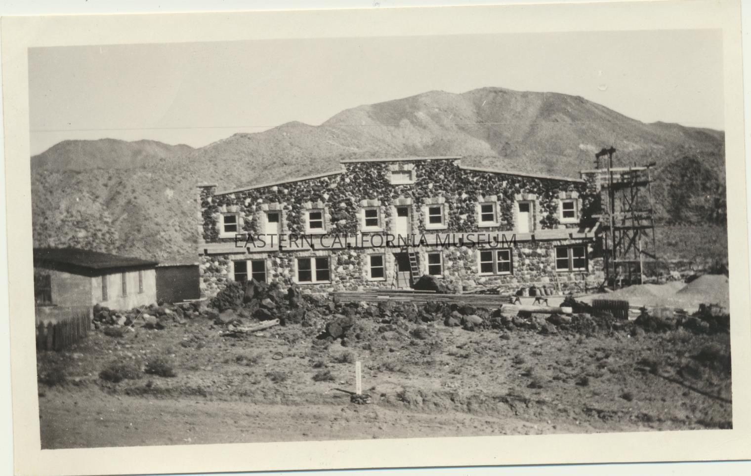 Photo of the Little Lake Hotel under construction, nearly finished. Scaffolding on right side.