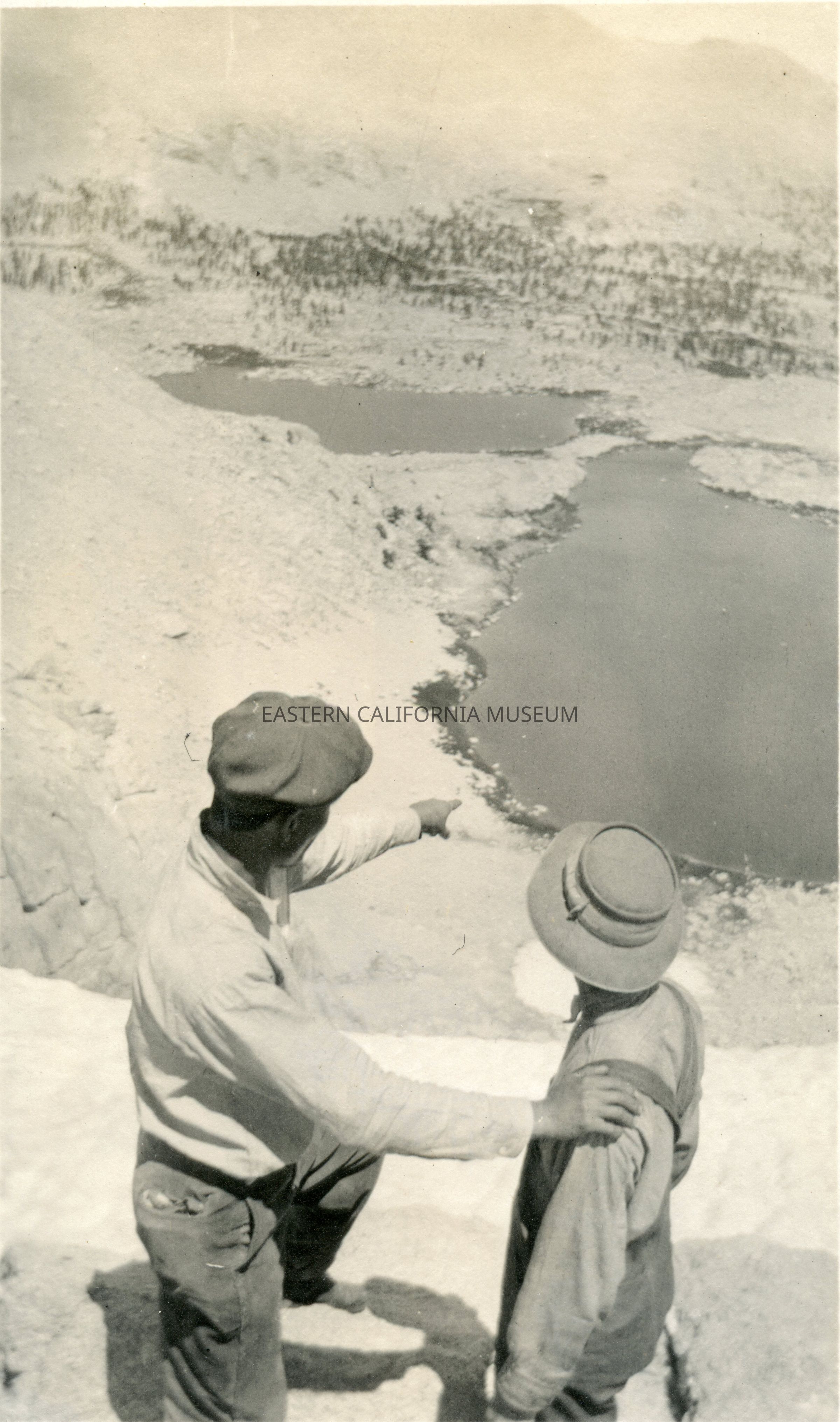 Identified by donor as: 1913-14 - Army Pass looking at Cottonwood Lake #4 and #5, unknown people
