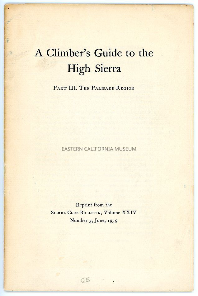 "A Climber's Guide to the High Sierra, Part III: The Palisade Region"
