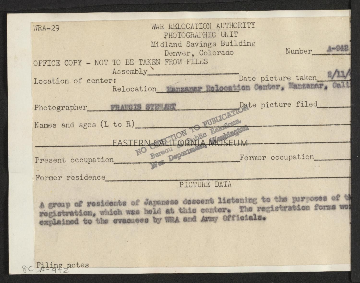 WRA no. A-942